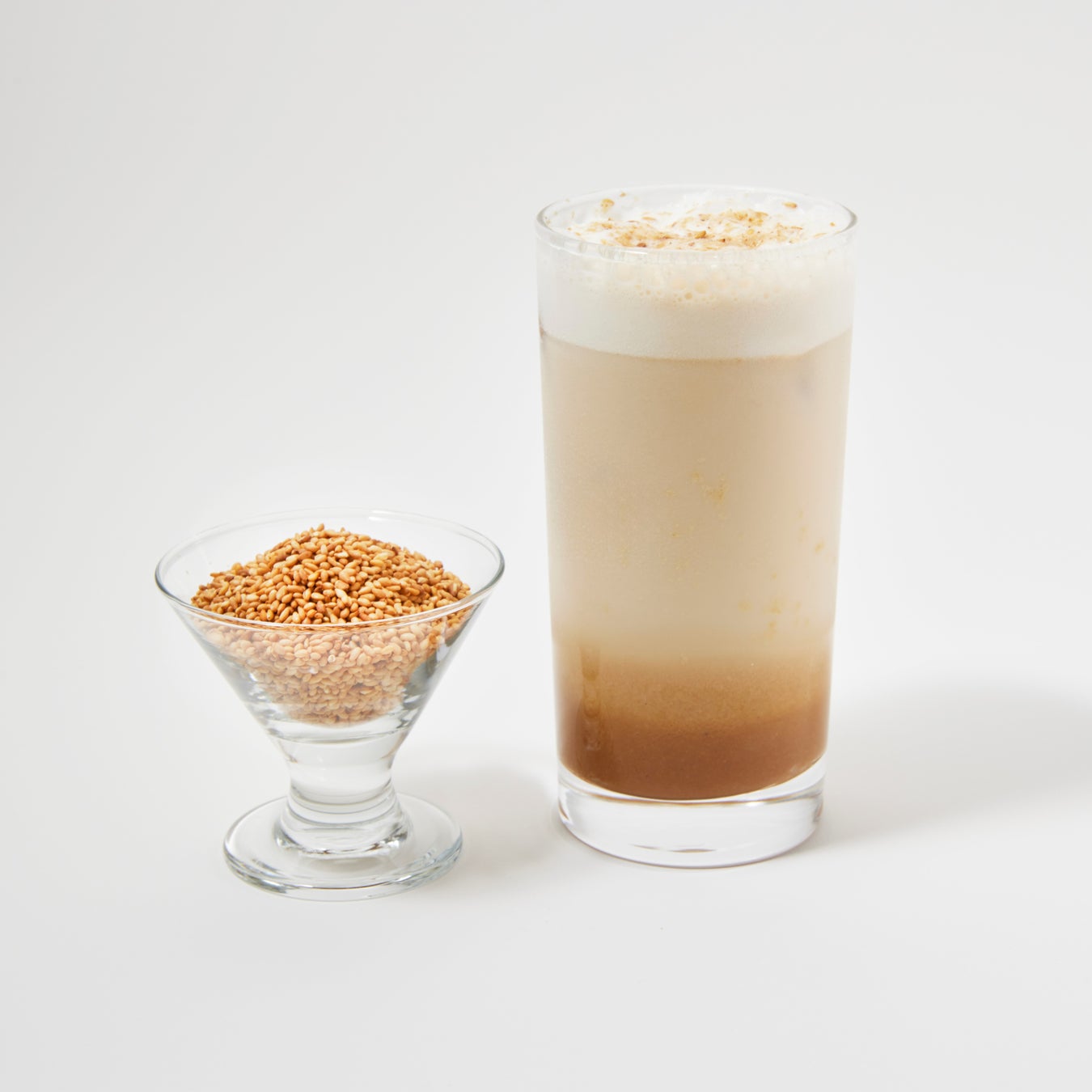 コーヒーのコクとホワイトチョコレートの甘みに濃厚なねりごまの風味がマッチし、「かどやの太白ごま油」で仕上げたふんわり アーモンドミルクフォームがやさしく包み込みます。ひと口飲むとすりごまの香ばしさが広がり、ごまの魅力をまるごと味わえる1杯です。