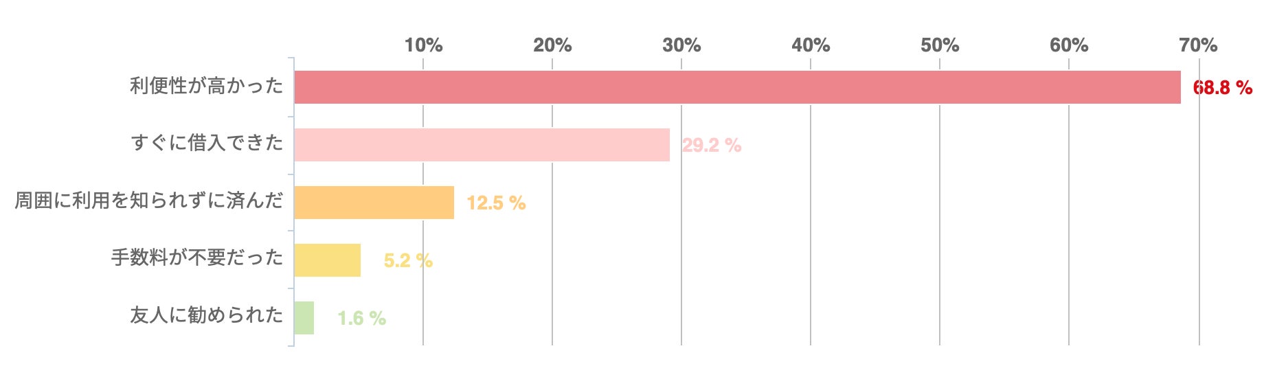 アンケートによれば、それぞれの借入方法を選んだ理由として「利便性の高さ(68.8%)」が圧倒的多数を占める結果となった。