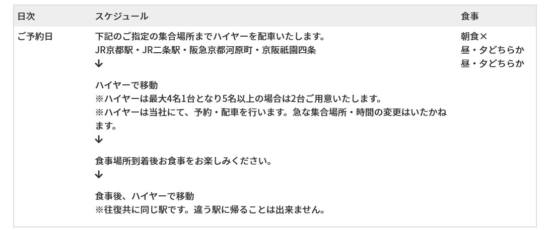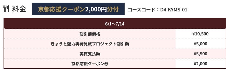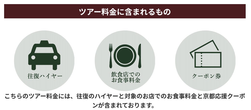 こちらのツアー料金には、往復のハイヤーと対象のお店でのお食事料金と京都応援クーポンが含まれております。