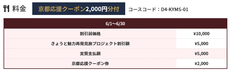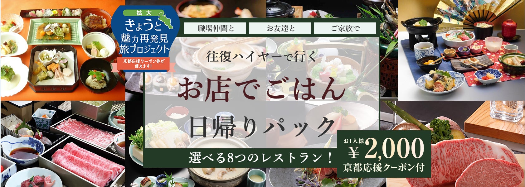 【7月14日迄延長!京都府・大阪府・兵庫県・滋賀県・奈良県・和歌山県・三重県民限定!】お一人様2,000円づつクーポン付5,000円で厳選したオススメのお店で京料理や懐石料理、+往復ハイヤーパック