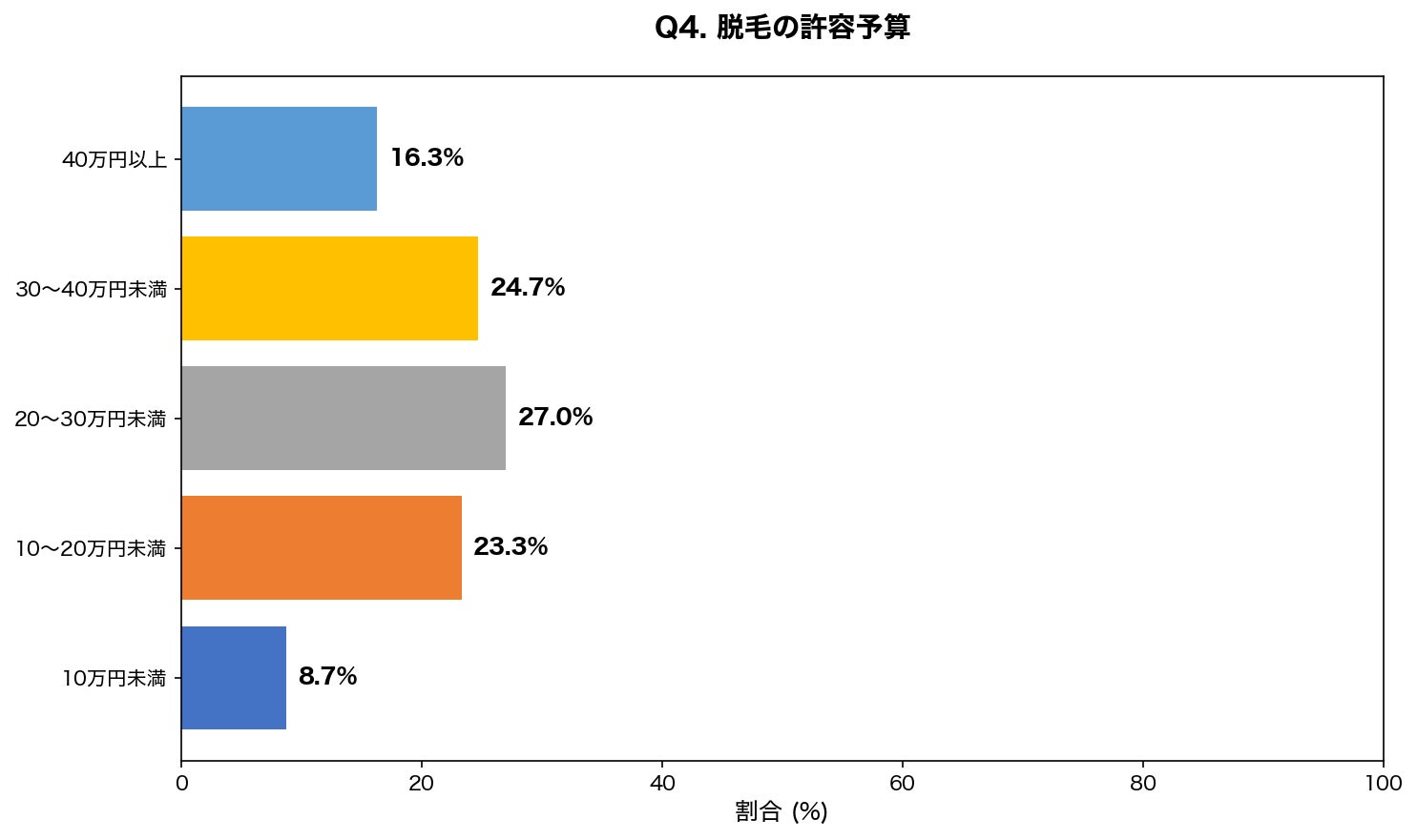 設問:脱毛にかける総予算として、いくらまでなら許容できますか?