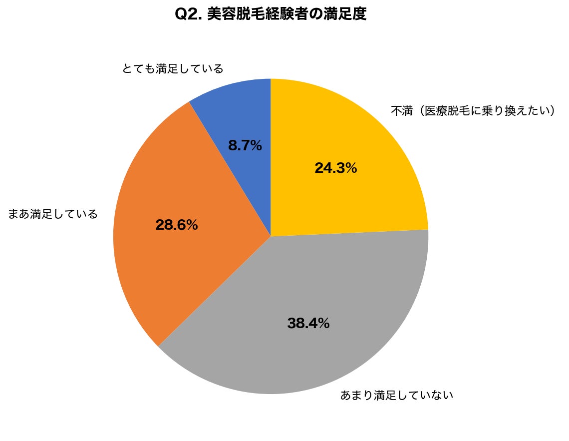 設問:美容脱毛を経験された方にお聞きします。効果に満足していますか?