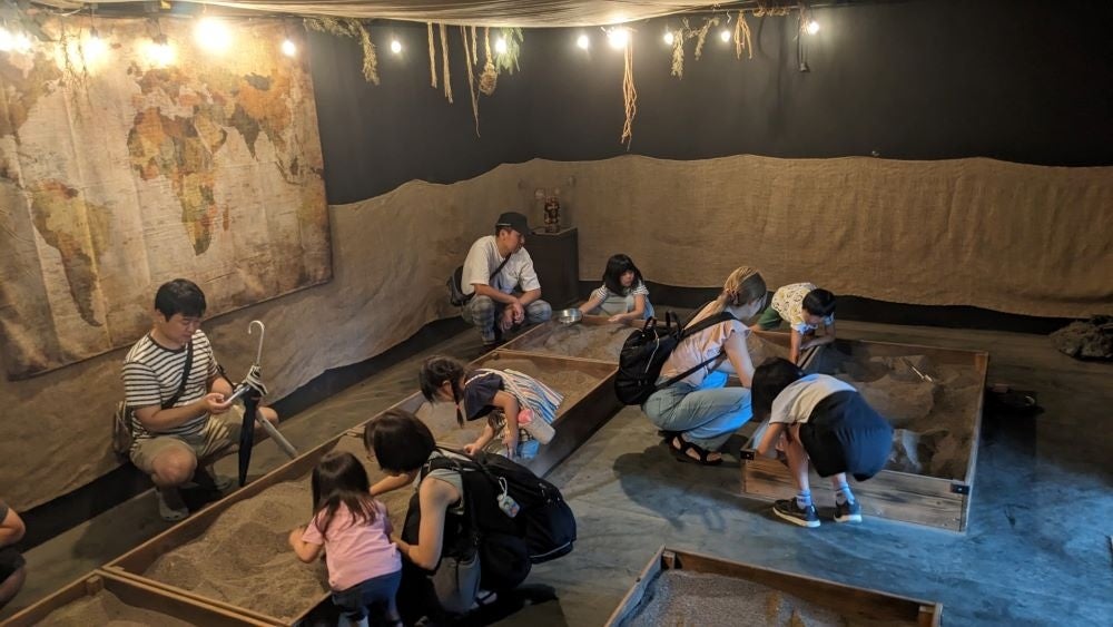 砂の中から色とりどりの“宝石”を見つけ出すわくわく体験ができます。まるで探検家になった気分で、宝探しが楽しめる昨年からの人気のコーナーです。見つけた宝石は持ち帰ることもできます。