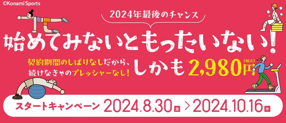 コナミスポーツ株式会社(以下、弊社)が運営するコナミスポーツクラブでは、2024年8月30日(金)から2024年10月16日(水)まで秋の入会キャンペーンを実施します。