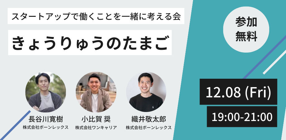 スタートアップで働くことを一緒に考える会、「きょうりゅうのたまご」。第一弾は、“メーカー・商社種”。大手企業出身の2人が、“新規事業開発”というキャリアについて考える。