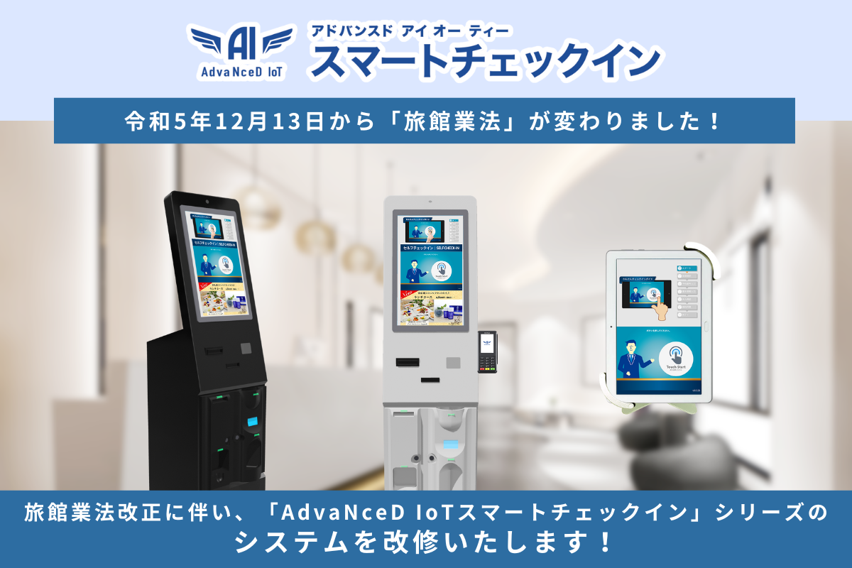 旅館業法改正に伴い、「AdvaNceD IoTスマートチェックイン」シリーズのシステムを改修いたします!