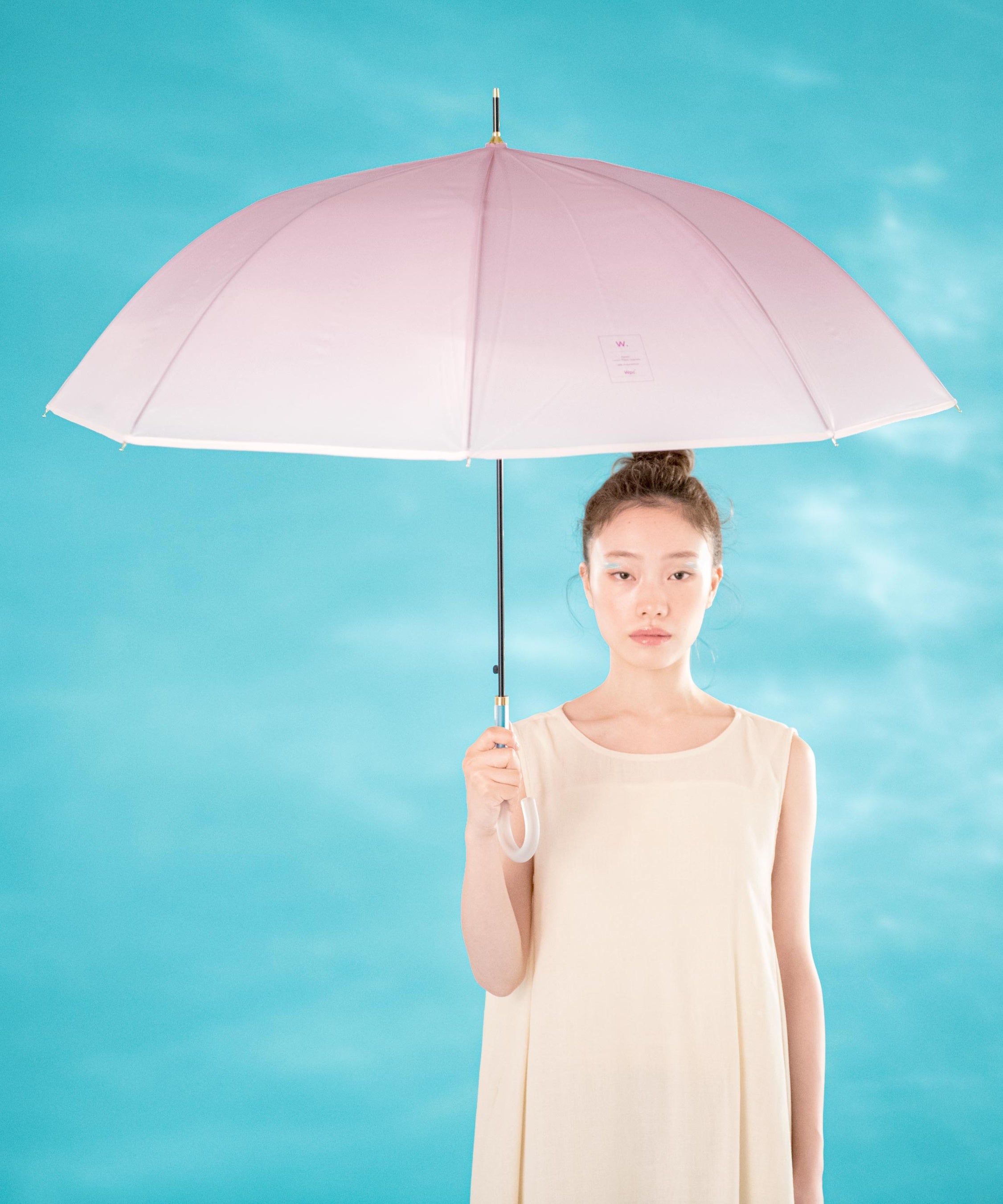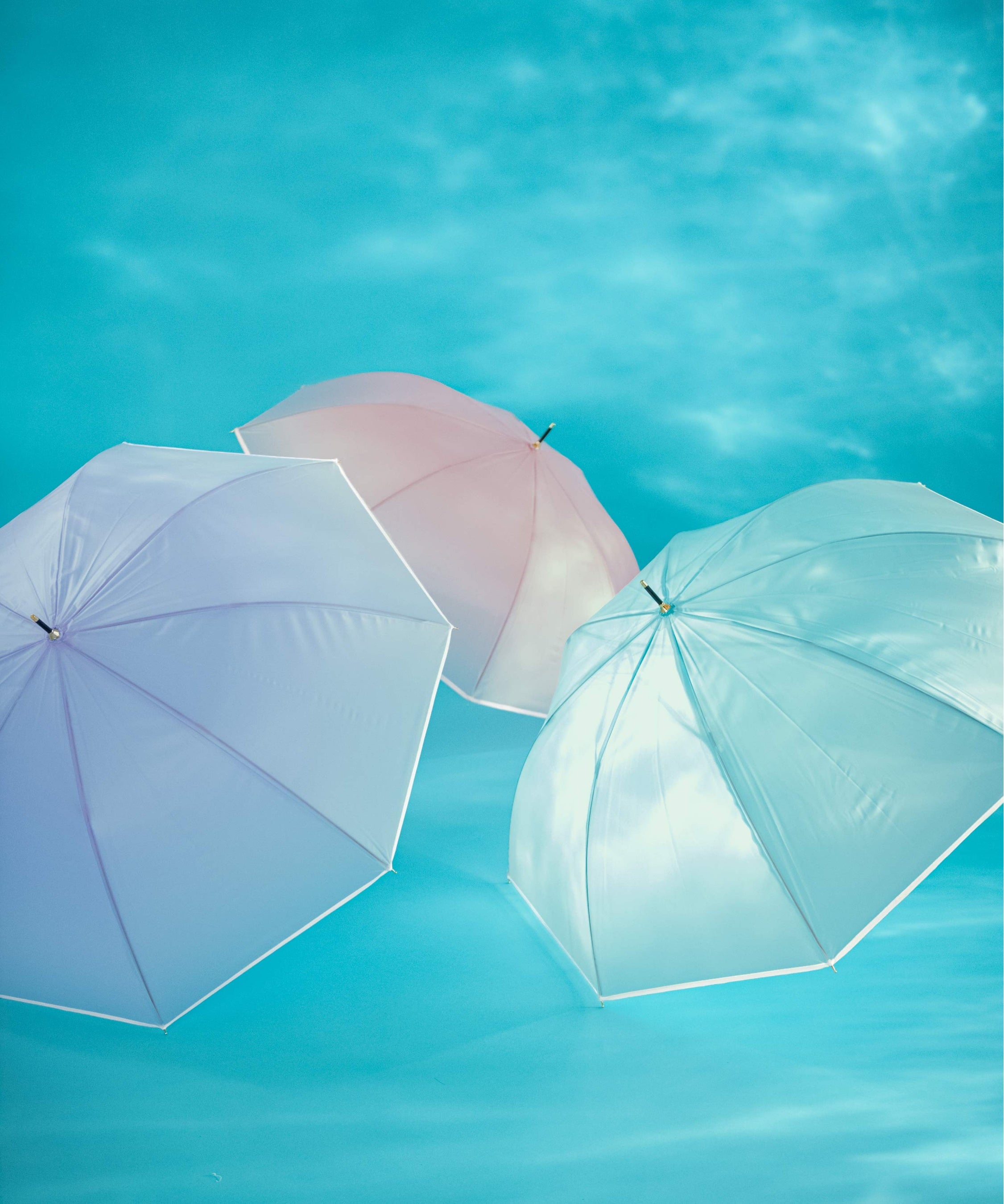 淡いグラデーションカラーと重なって、傘をさすだけでメイクをしたように顔まわりが華やかになります。