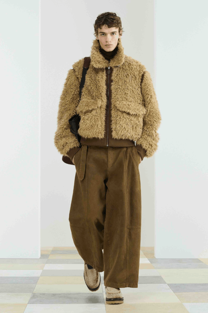 今シーズンは、ミッドセンチュリー期のアイビーリーグスタイルと、1950年代中期のプロポーションを基盤に、現代的な感覚へと再構築しています。フィールドジャケットやフライトジャケットの構造は簡素化され、テクスチャーのあるニットが、コート、ニット、トラウザー、ブーツといった基本ユニフォームに奥行きを与えます。シーズンの中心には、SRPLSの象徴的なディテール豊かなフルレッグトラウザーがあります。そのデザインはあくまでシンプル。ウエストの位置はバランス良く、太ももには動きやすさを確保。裾はブーツに沿わせることも、形を整えることも可能です。穿くだけでシルエットが自然に決まるまさにプロポーションを整えるトラウザーです。ポケット、ドローコード、留め具は、すべてその機能のために配置され、装飾ではなく日常の装備としてのウェアへと昇華させています。毎日着るべきマストアイテムが競い合うようなコレクションです。