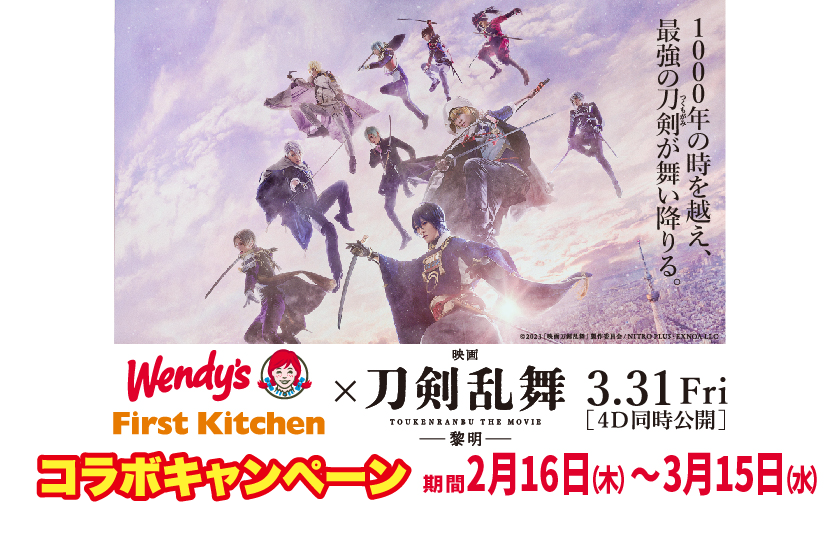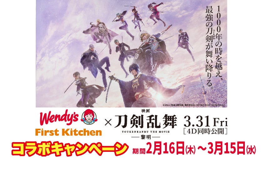 ウェンディーズとファーストキッチンに最強の刀剣(つくもがみ)が舞い降りる。『映画刀剣乱舞–黎明-』 とのコラボでオリジナルグッズをプレゼント!