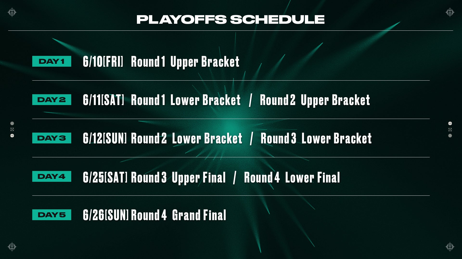 当初、6月16日(木)〜6月19日(日)の4日間で開催を予定しておりましたPlayoffsの日程が下記へと変更となりました。