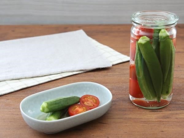 旬の野菜を使った,みょうがやねぎと組合せたピクルスもおすすめです。
