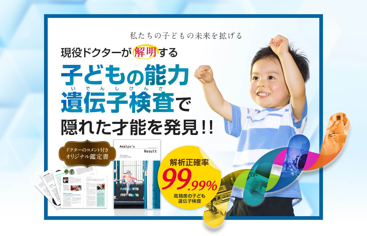 子ども向け遺伝子検査キット(タイプX、タイプY、学習・身体・感性の各種分野別、協調性、絵本シリーズ)をご購入のお客様へ。