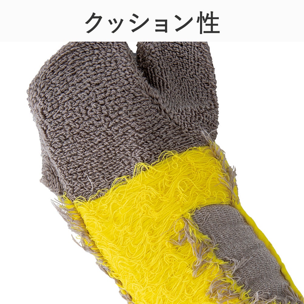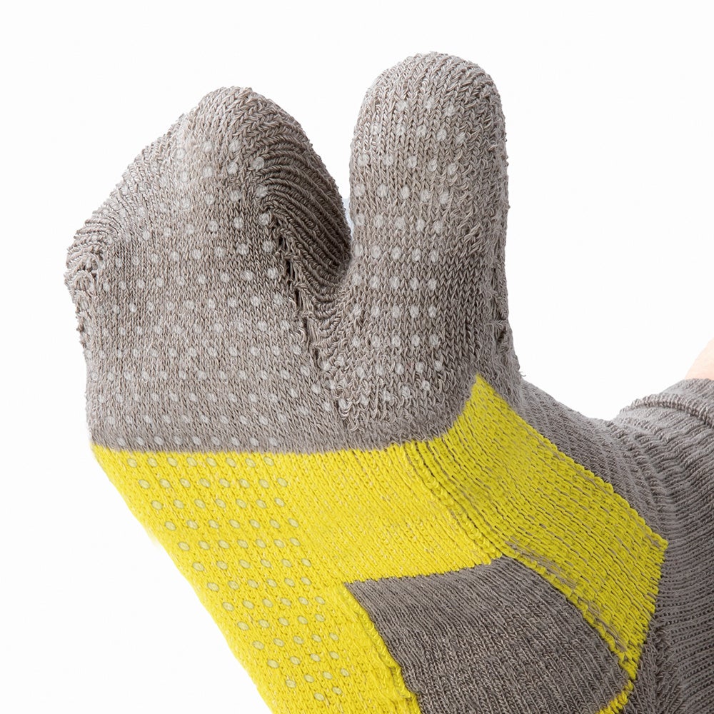 親指に力が入りやすい足袋型。足指部分には地面を掴むシリコーンプリント。