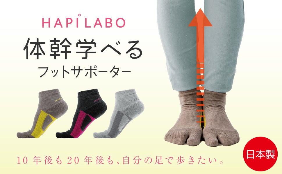軸が変わるとカラダが変わる!履くだけで「体軸」を意識『ハピラボ 体幹学べるフットサポーター』新発売