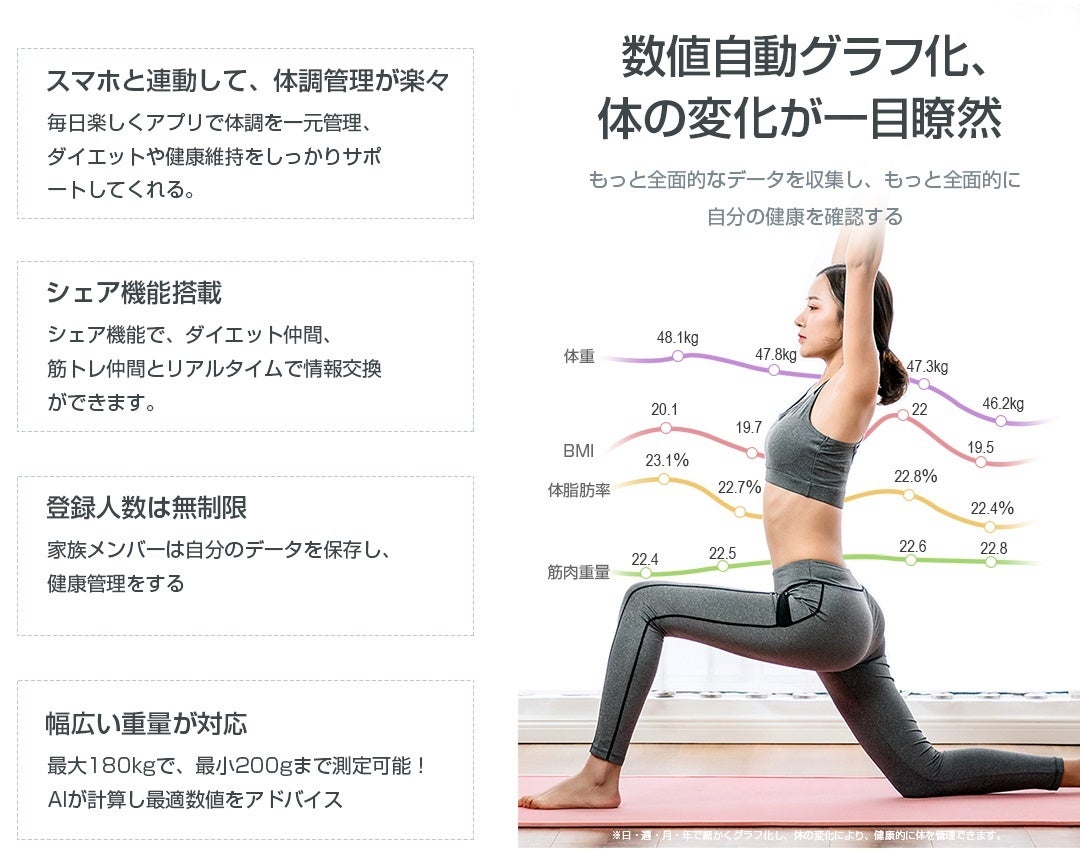 当社の体重体組成計を通して、自分の身体のことを細かなところまで知り、もっと系統的に健康管理をしましょう~