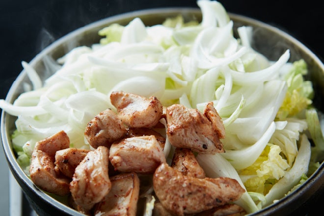 新玉ねぎは、焼くことで甘みが増幅し、とろとろになり香ばしさもプラスされます。白菜鍋との相性抜群です。
