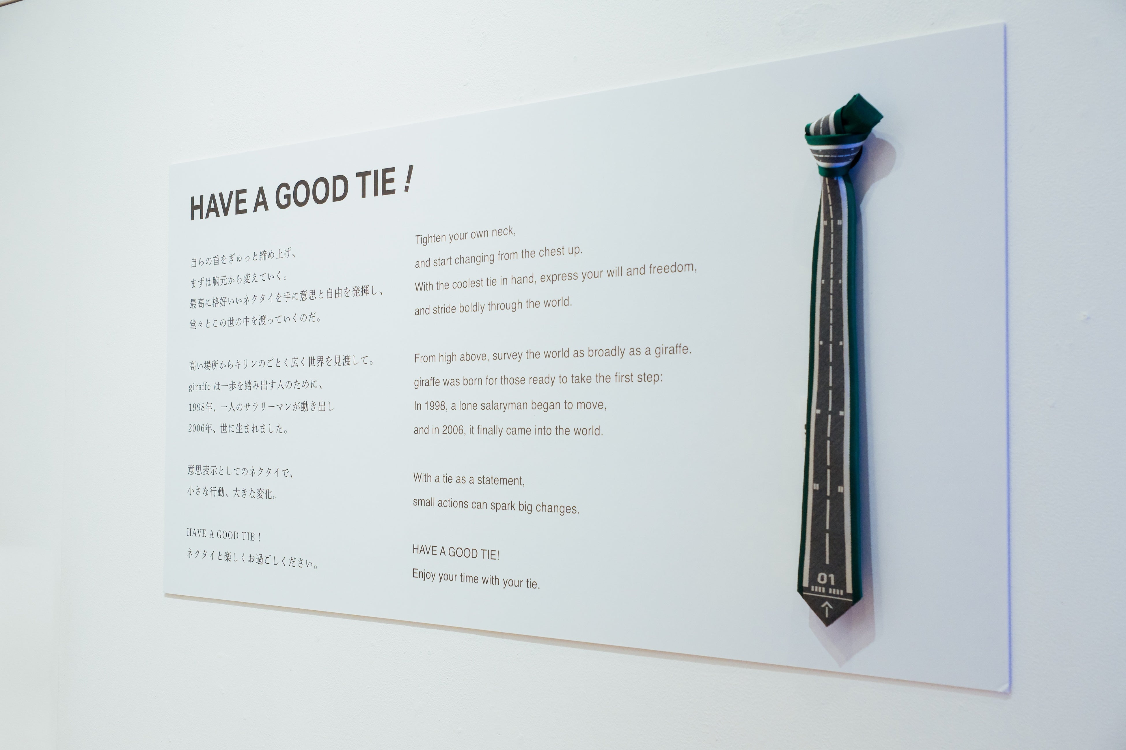 ネクタイブランド「giraffe」は、国立新美術館 B1F スーベニアフロムトーキョー SFT GALLERYにて、展示「HAVE A GOOD TIE!」を開催いたします。