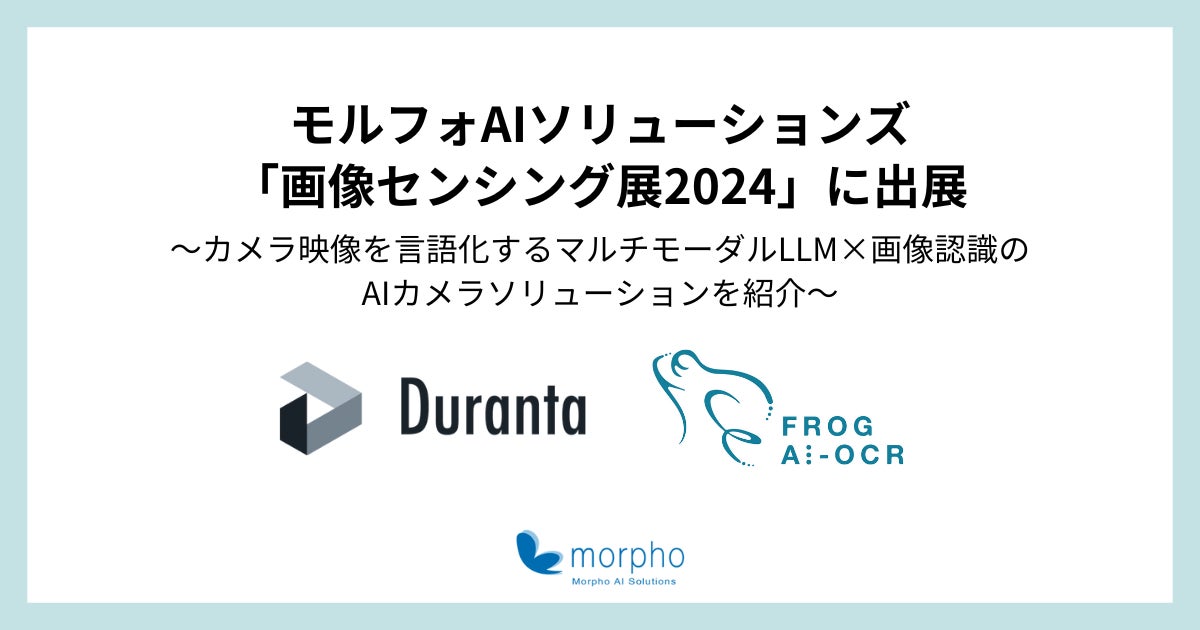 モルフォグループにおいてAIの事業化を担う、株式会社モルフォAIソリューションズ(所在地:東京都千代田区、代表取締役:神田武、以下 モルフォAIS)は、2024年6月12日(水)よりパシフィコ横浜で開催される「画像センシング展2024」(小間番号:58)に出展します。