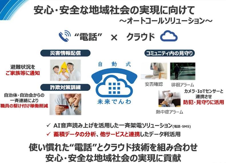 災害時に備えた無料公衆設置の実動訓練および、災害伝言ダイヤル(171)やオートコールソリューション、Web113等の周知活動を行うことで、万が一の災害に備えてこれからも「つなぎ続ける使命」を果たすため、ネットワークの信頼性向上・重要通信の確保・サービスの早期復旧に取り組み、地域の皆さまの安心・安全に努めていきます。