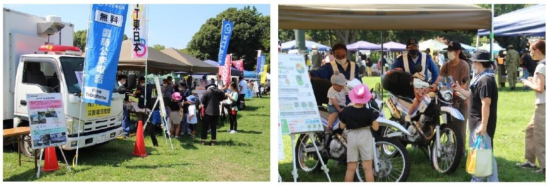 ・バイク隊の現地情報収集および、ポータブル衛星を使った臨時公衆電話の設置・ブース展示による「災害用伝言ダイヤル(171)」「オートコールソリューション」「Web113」等の紹介