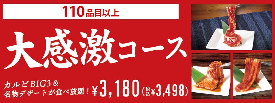 名物カルビや待望の新メニューを思う存分食べ放題!