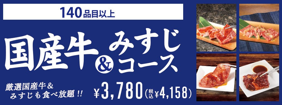 (食べ放題対象コース:じゅうカルコース、国産牛&みすじコース、牛タン&黒毛和牛コース)