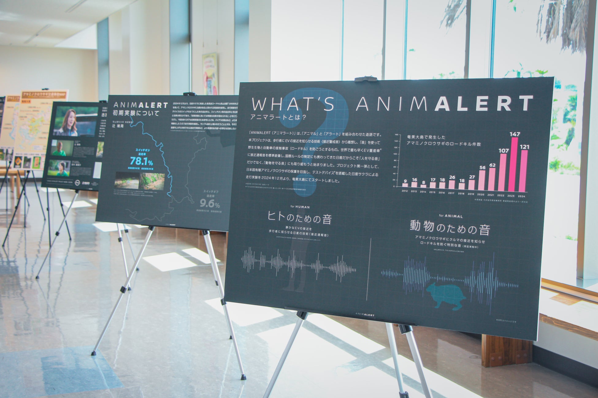これまでの実験の模様をまとめたパネルを奄美大島の玄関である空港に夏休み期間に合わせて展示。島内外の方にロードキルの実態と取り組みを周知しました。また、9月に西表島・徳之島にて行われた、奄美巡回展でも現地学芸員の方のご要望でNISSAN ANIMALERT PROJECTをご紹介いただきました。
