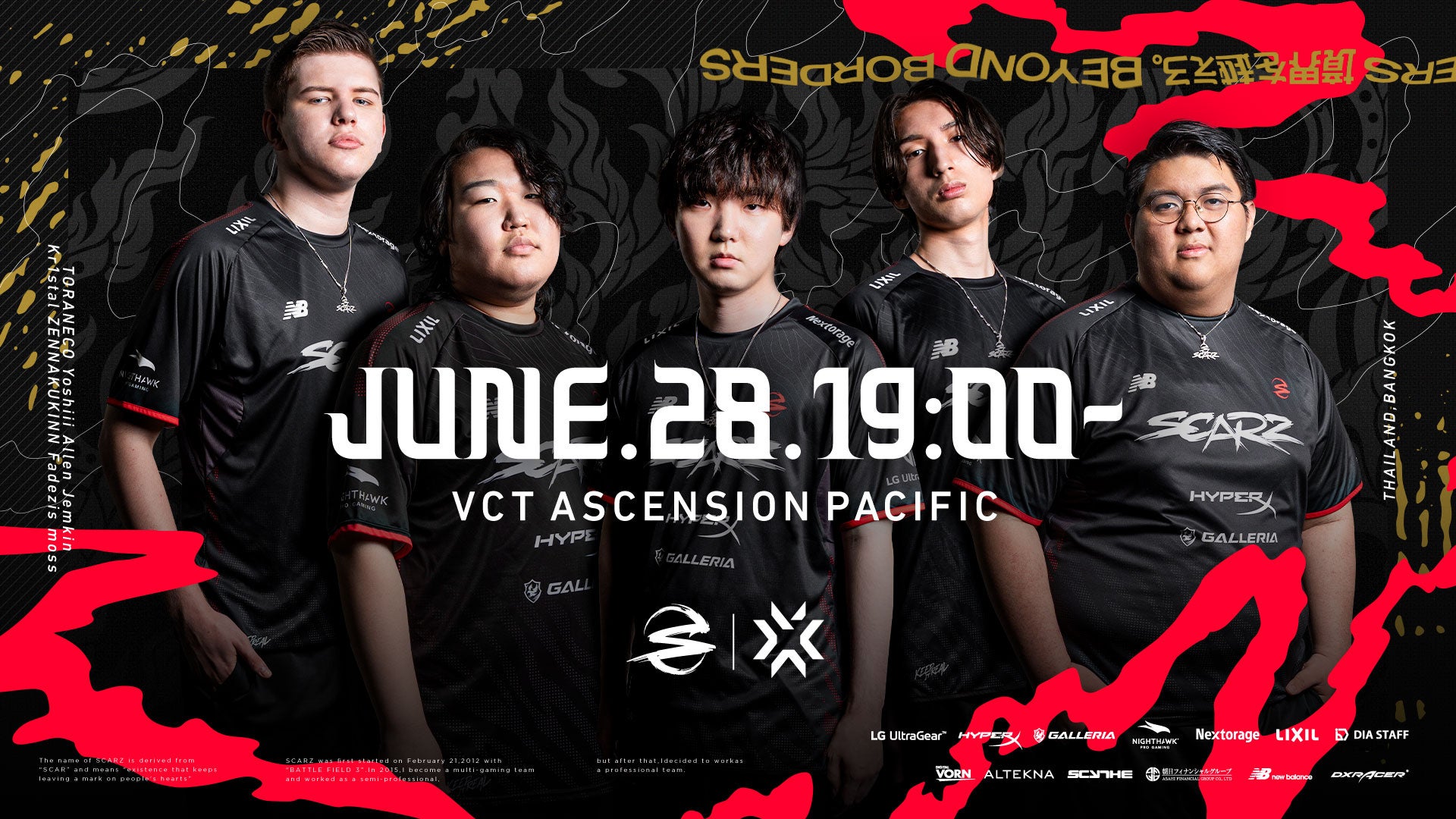 eスポーツチームSCARZが日本代表として出場するVALORANTのアジア国際⼤会『VCTASCENSION PACIFIC 2023』が6/28(水)より開幕