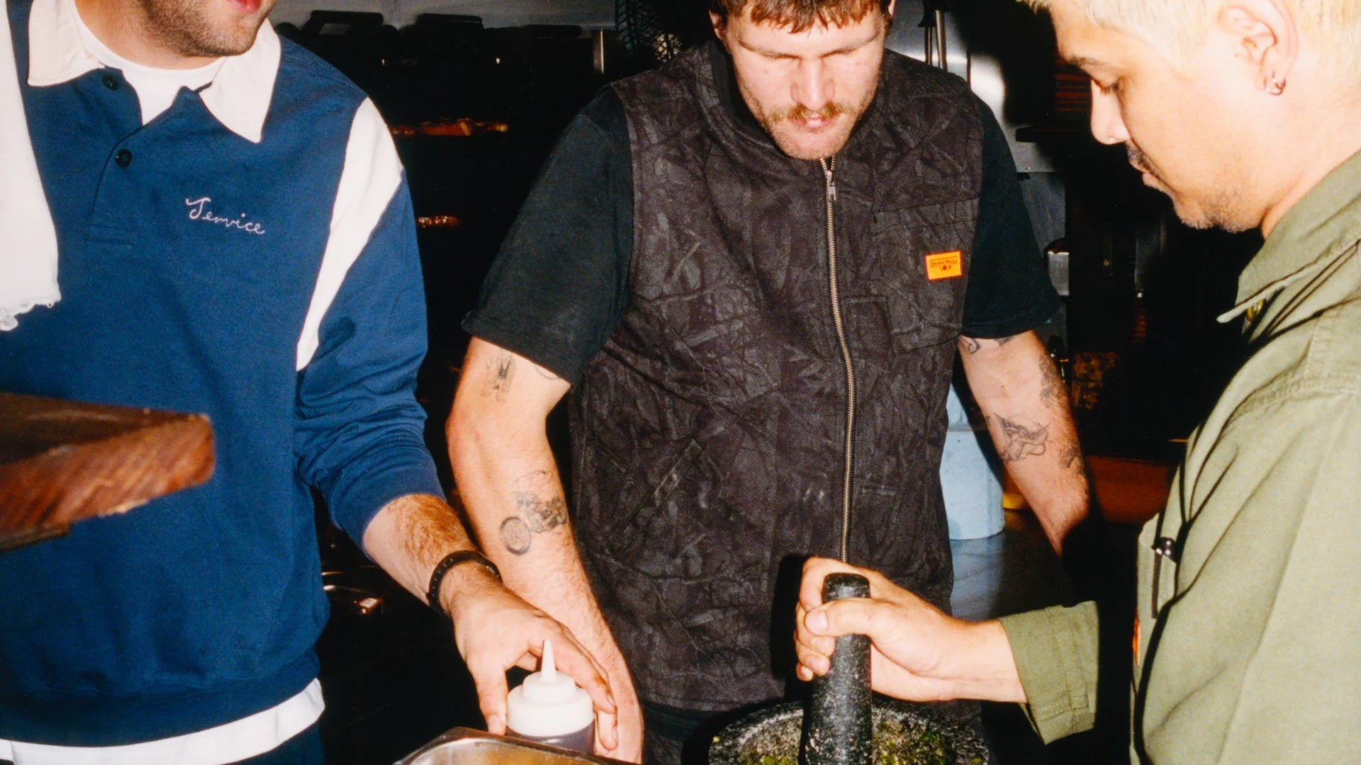 2020年にロンドンで誕生した〈Service Works〉は、“食”への愛情とキッチンワークへのリスペクトを原点にスタートしました。シェフパンツを日常使いできる耐久性の高いアイテムへと再構築し、ヘビーデューティーな素材と快適なシルエットを融合。素材には厳選されたオーガニック素材を用いています。厨房のために作られ、日常へと適応したプロダクトを作り出しています。