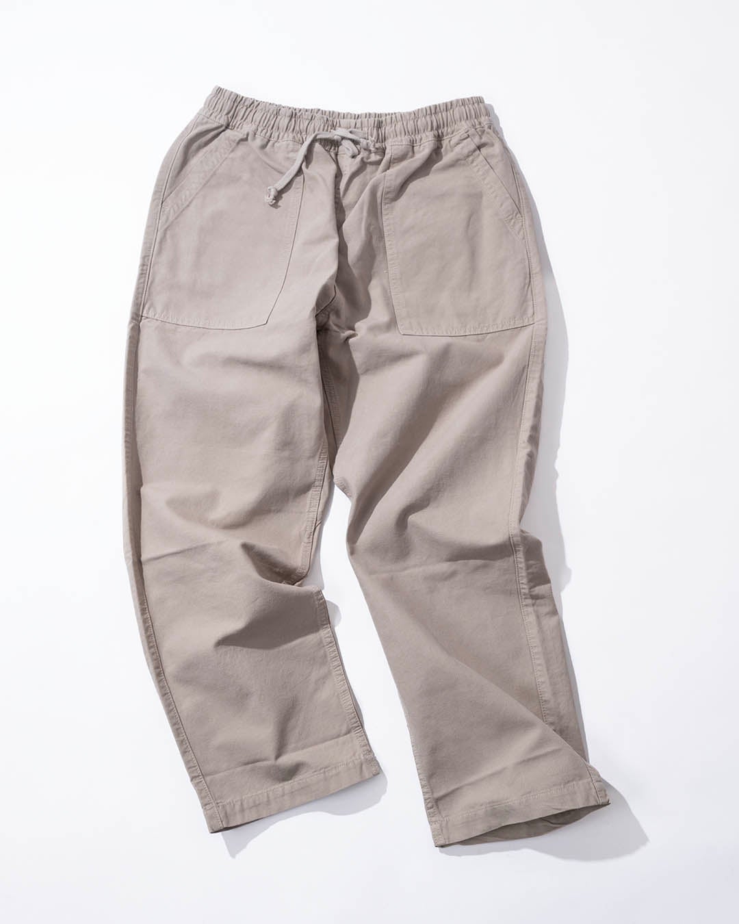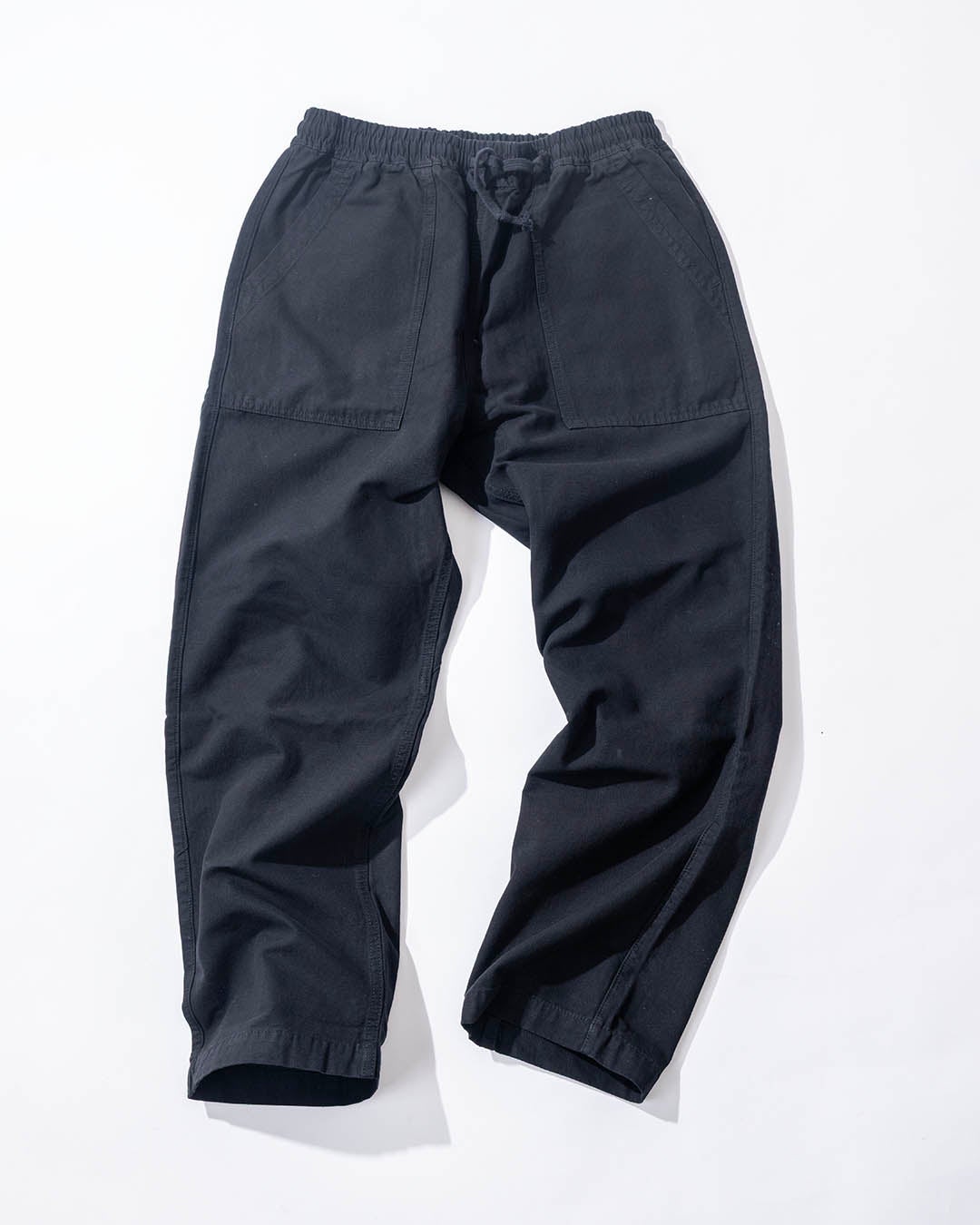 ゆったりとしたストレートシルエットに、ウエストはドローストリング仕様で調整が可能。