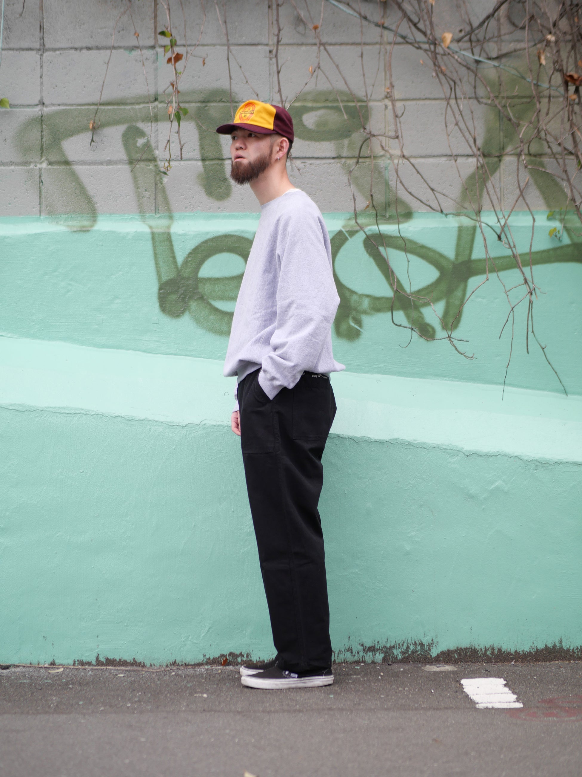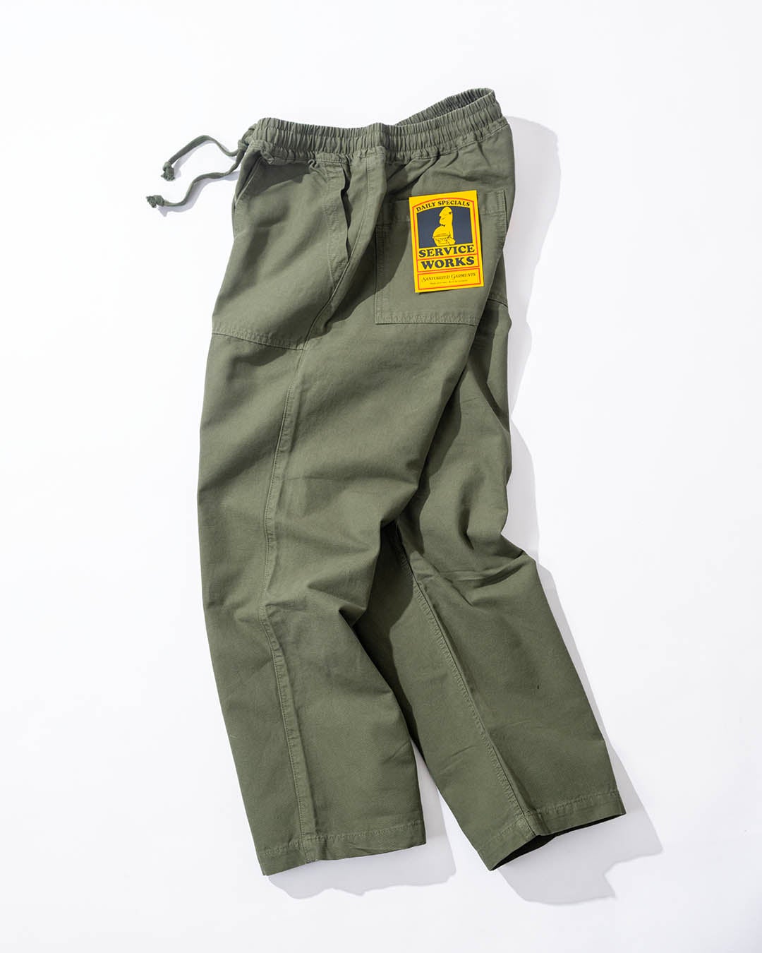ジャストレングスで整った印象にも、やや腰を落としたルーズなスタイルにも対応する汎用性の高い一本です。初めて〈Service Works〉を選ぶ方や、モデル選びに迷う方にも適したスタンダードモデルです。