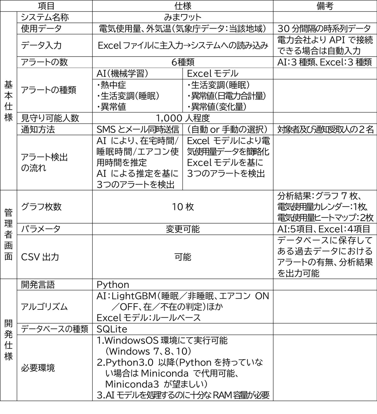 | 発明の名称 | 電気量データから単身高齢者の在室状況を検知し、アラートを発報するシステム |