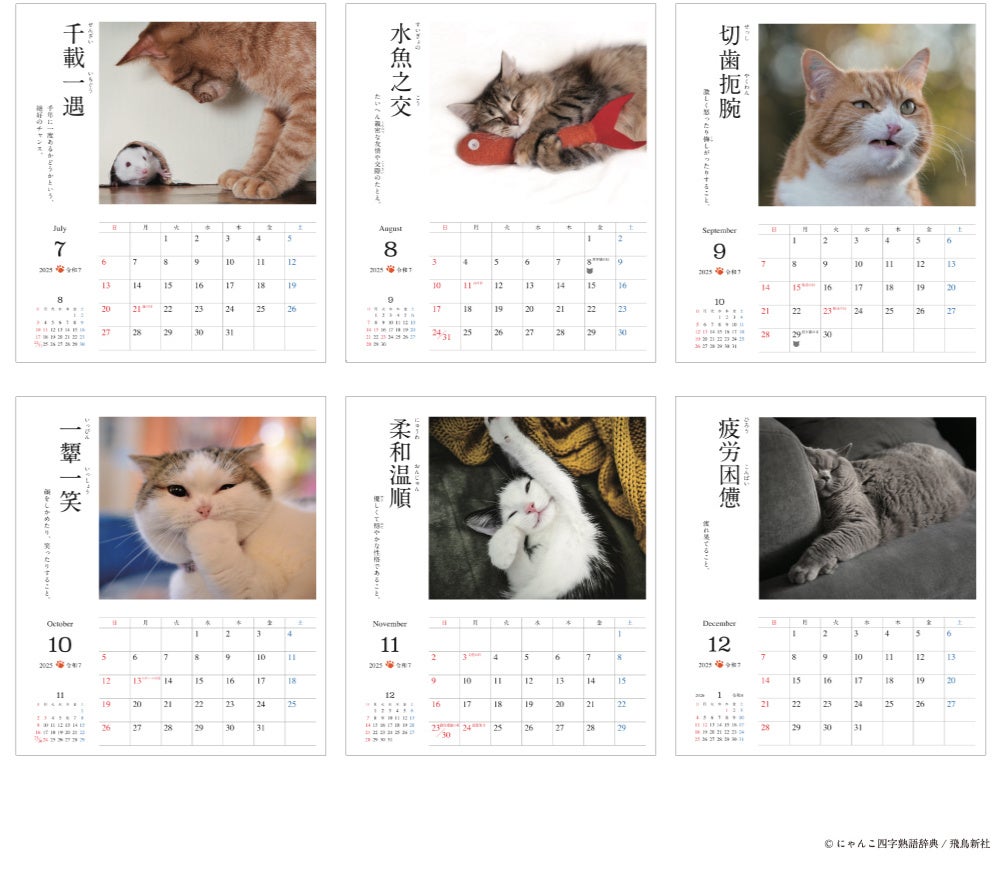 シリーズ累計30万部以上の大ヒット書籍「にゃんこ四字熟語辞典」「にゃんこ四字熟語辞典2」から選り抜きの「にゃんこ四字熟語ポストカード」「にゃんこ四字熟語カレンダー2025」が新登場!