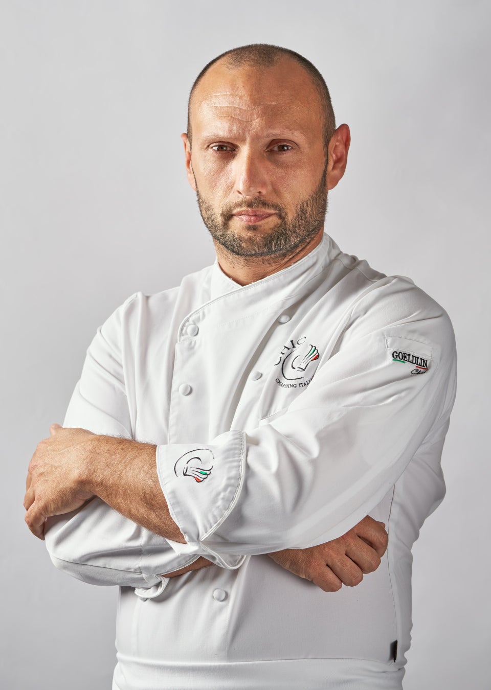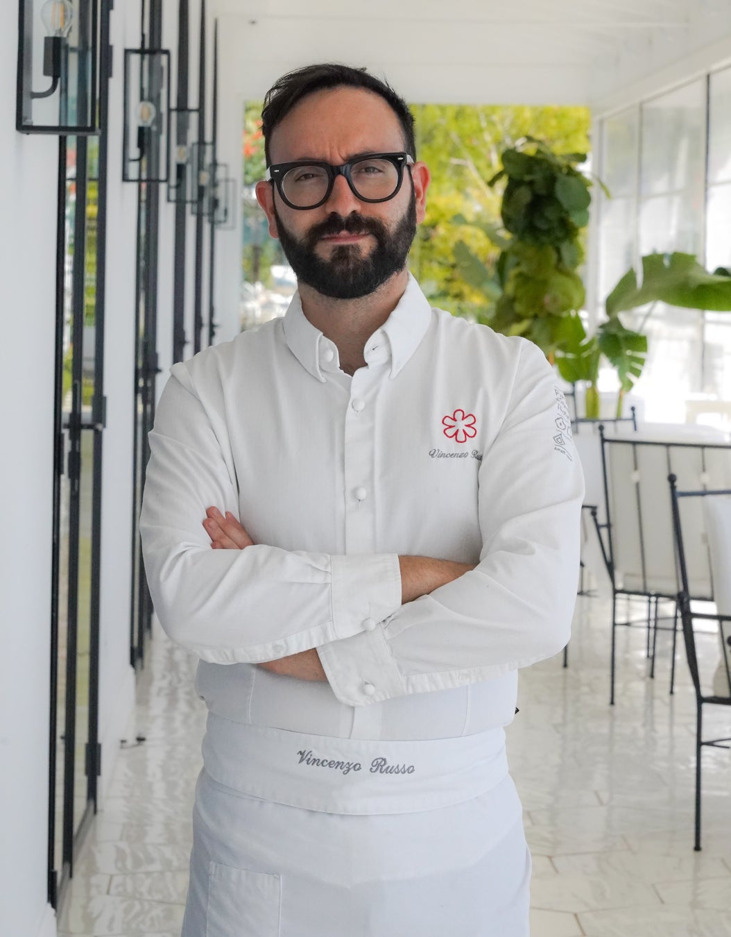 ナポリ近郊の出身。ルッソ氏は幼少期より食材や南イタリアの食文化に親しみ、料理人の道を志しました。料理学校卒業後は、名シェフであるアントニーノ カンナヴァッチュオーロ氏のもと、「ヴィラ クレスピ」にて7年間研鑽を積み、確かな技術と創造性を培いました。現在は、フローレ グランド ホテル内のミシュラン一つ星レストラン「ブルー フローレ」にて、カンパニアの魅力を自身の解釈で表現した、洗練された料理を提供しています。2023年には同レストランがミシュラン一つ星を獲得。