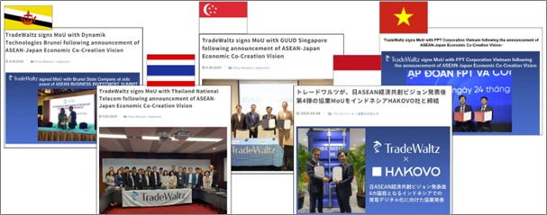 以降、日ASEAN経済共創ビジョンの元、各国は非常に友好的に協力頂き、9-10月にかけてASEAN10か国の半数となる5か国の貿易プラットフォーム事業者とシステム間連携・協業に向けたMoUを締結してきました。