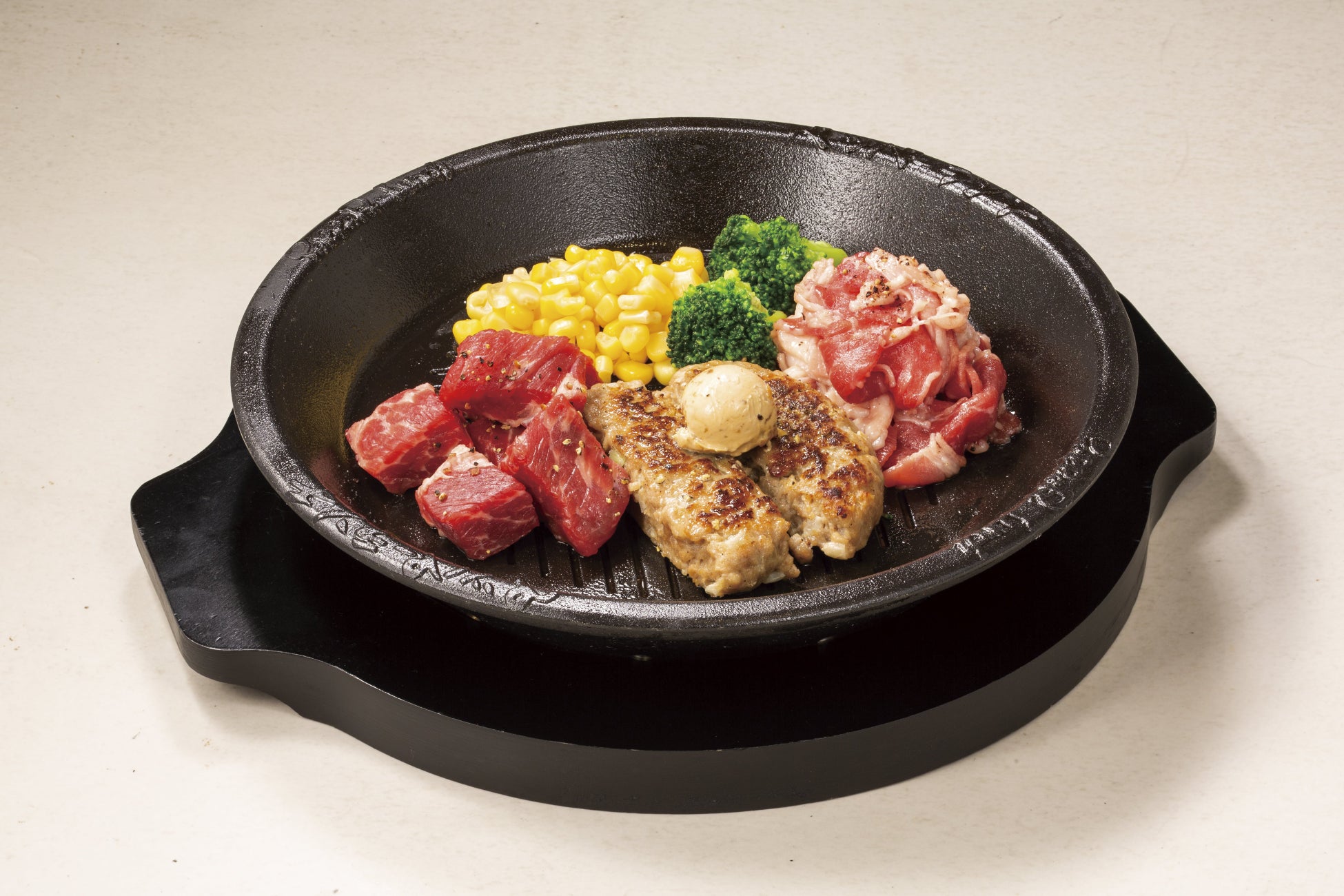 毎月29日に実施している肉の日ですが、今月は年に1回の2月9日の肉の日と合わせて拡大キャンペーンを実施いたします。昨年12月にグランドメニューに仲間入りした「肉盛りPEPPER‘S」。ハンバーグ、ステーキ、牛焼肉がワンプレートで楽しめるよくばりメニューとして多くのお客様にお召し上がりいただいています。日頃のご愛顧を感謝して、1月29日(月)~2月9日(金)の期間中、「肉盛りPEPPER’S」を限定価格の990円で販売いたします。