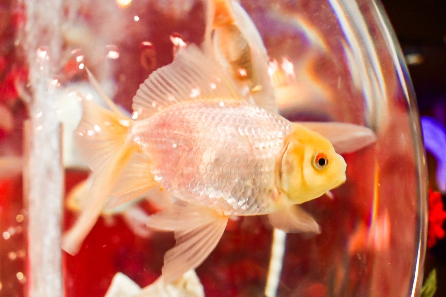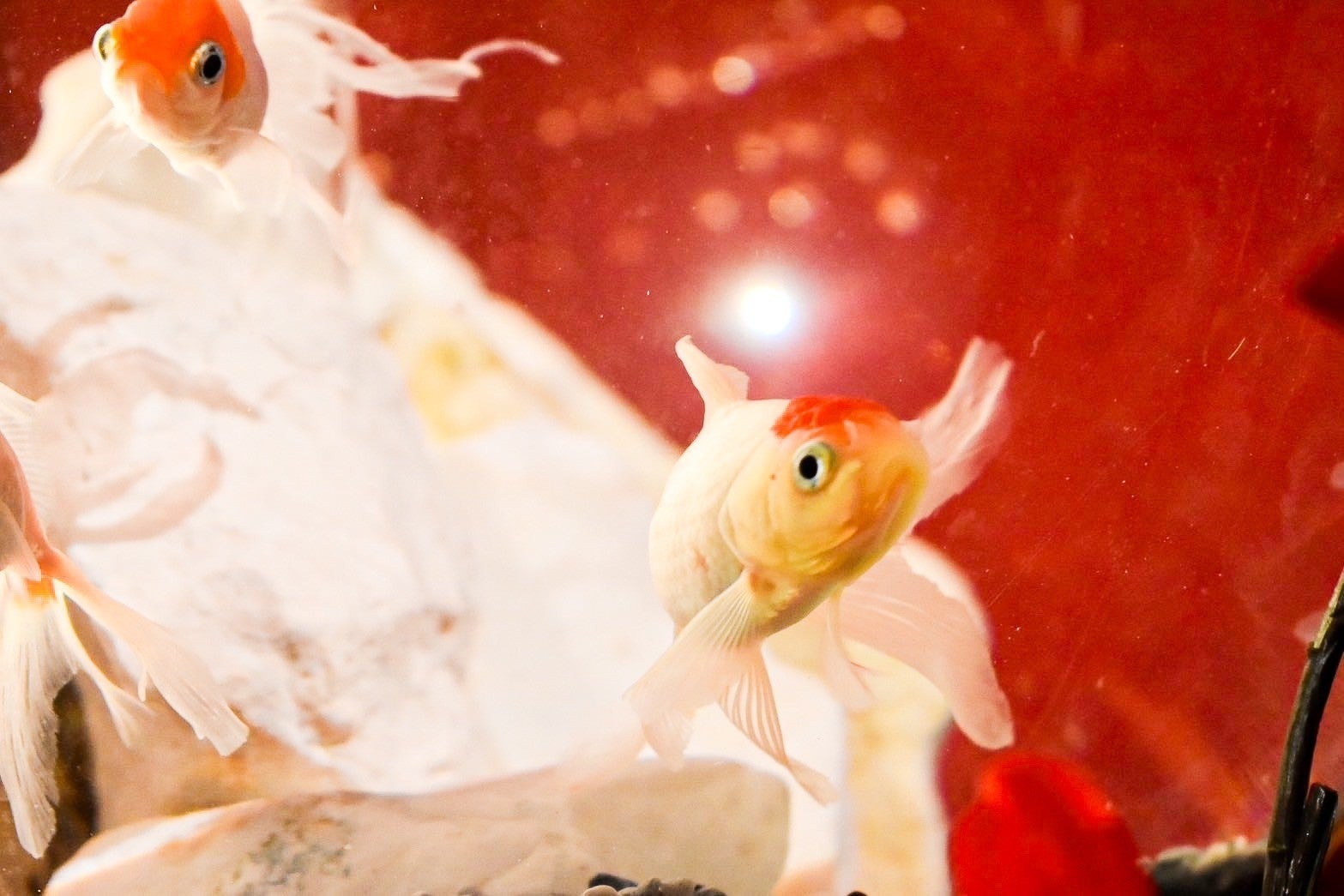 クリスマスカラーに染まる幻想空間 「煌めきんぎょ」企画展が奈良金魚ミュージアムで開催。赤と白のコントラストがサンタクロースを連想させる特別展示。
