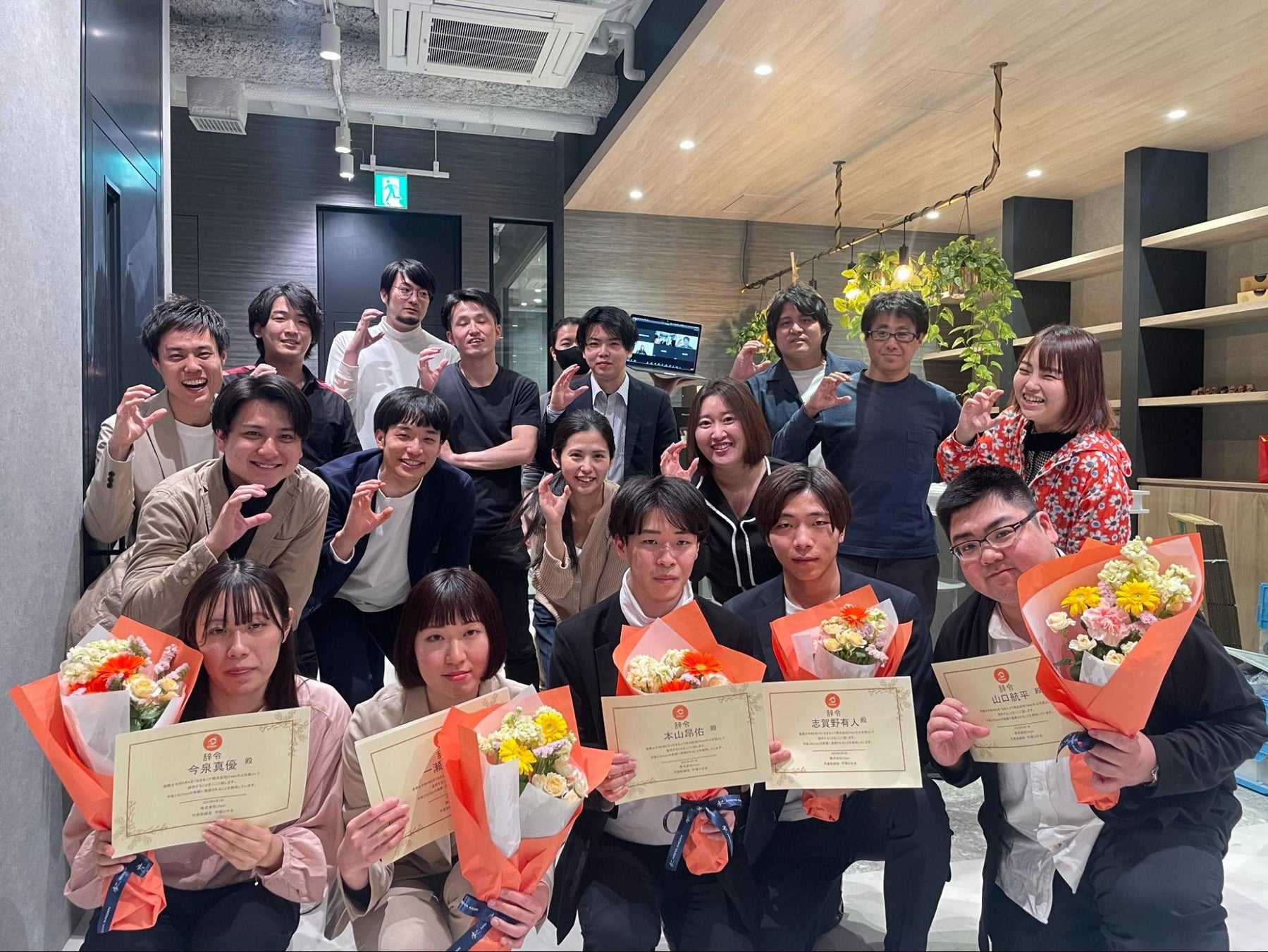 式の終盤には社長から直々に新卒社員へ入社辞令書を交付いたしました。これまで内定者インターン生として働いていた23卒も辞令交付により、晴れて正社員となり、今後の一層の活躍を胸に誓う時間となりました。