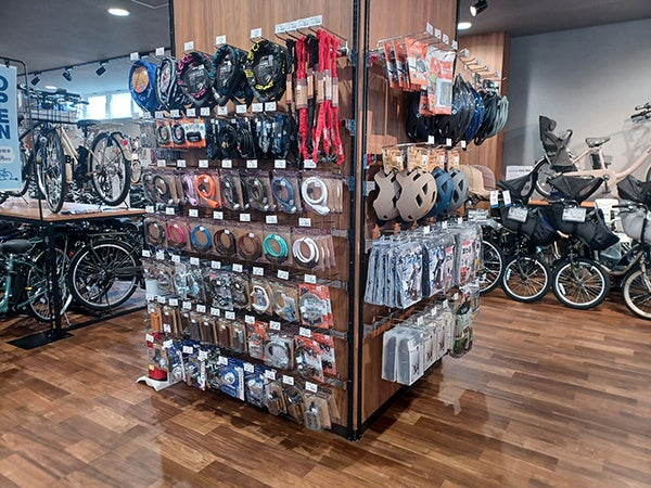 ダイワサイクル十日市場店は1階建ての店舗で、電動アシスト車やシティサイクル、スポーツサイクル、ミニベロ・折畳車、子供車と幅広い年齢の方に向けた自転車をご用意いたしております。店舗周辺にお子様が多くお住まいであることから、特にキッズ向けの自転車には力を入れており、スポーツバイクメーカーのキッズラインを多く取り揃えております。
