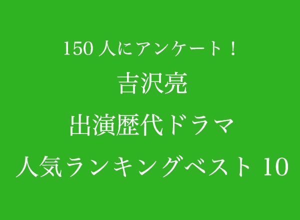 そんな吉沢さんが、今まで出演してきたドラマの中ではどんなタイトルが人気なのでしょうか? 150人にアンケートを実施し、その結果をランキング形式でベスト10まで紹介していきます。