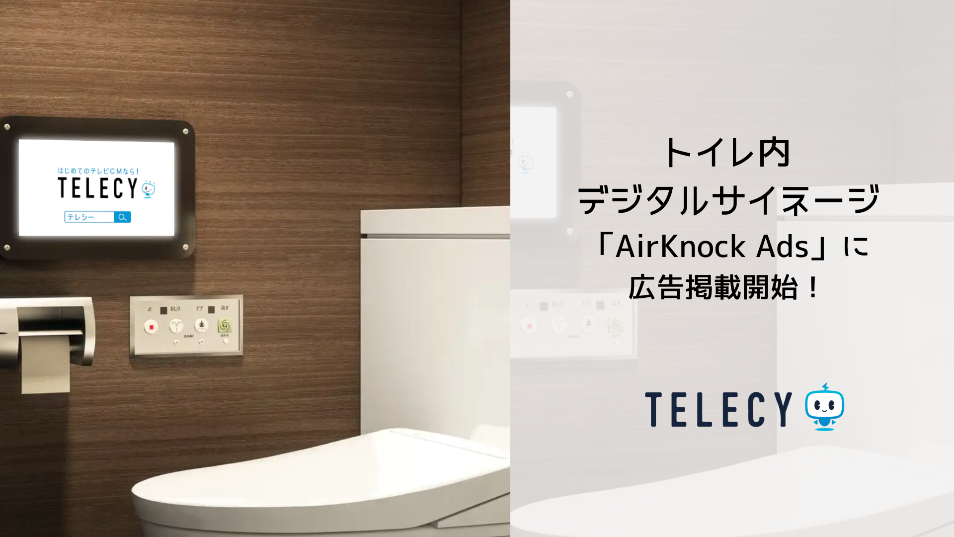 株式会社CARTA HOLDINGSのグループ会社で、株式会社電通(本社:東京都港区、代表取締役社長執行役員:榑谷 典洋)と共同で運用型テレビCMプラットフォーム「テレシー」(https://telecy.tv/ )を運営する株式会社テレシー(東京都渋谷区、代表取締役CEO:土井 健)は、株式会社バカン(東京都千代田区、代表取締役:河野剛進)が提供するトイレの混雑抑止メディアサービス「AirKnock」を活用したトイレ内デジタルサイネージ広告「AirKnock Ads」に、自社広告の掲載を開始しました。