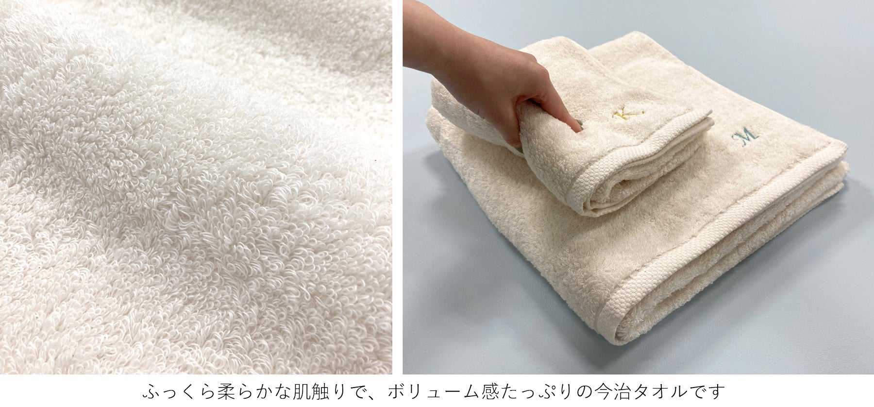 柔らかさ、吸水性、耐久性を追い求め織り上げられた今治謹製のタオルをお楽しみください。