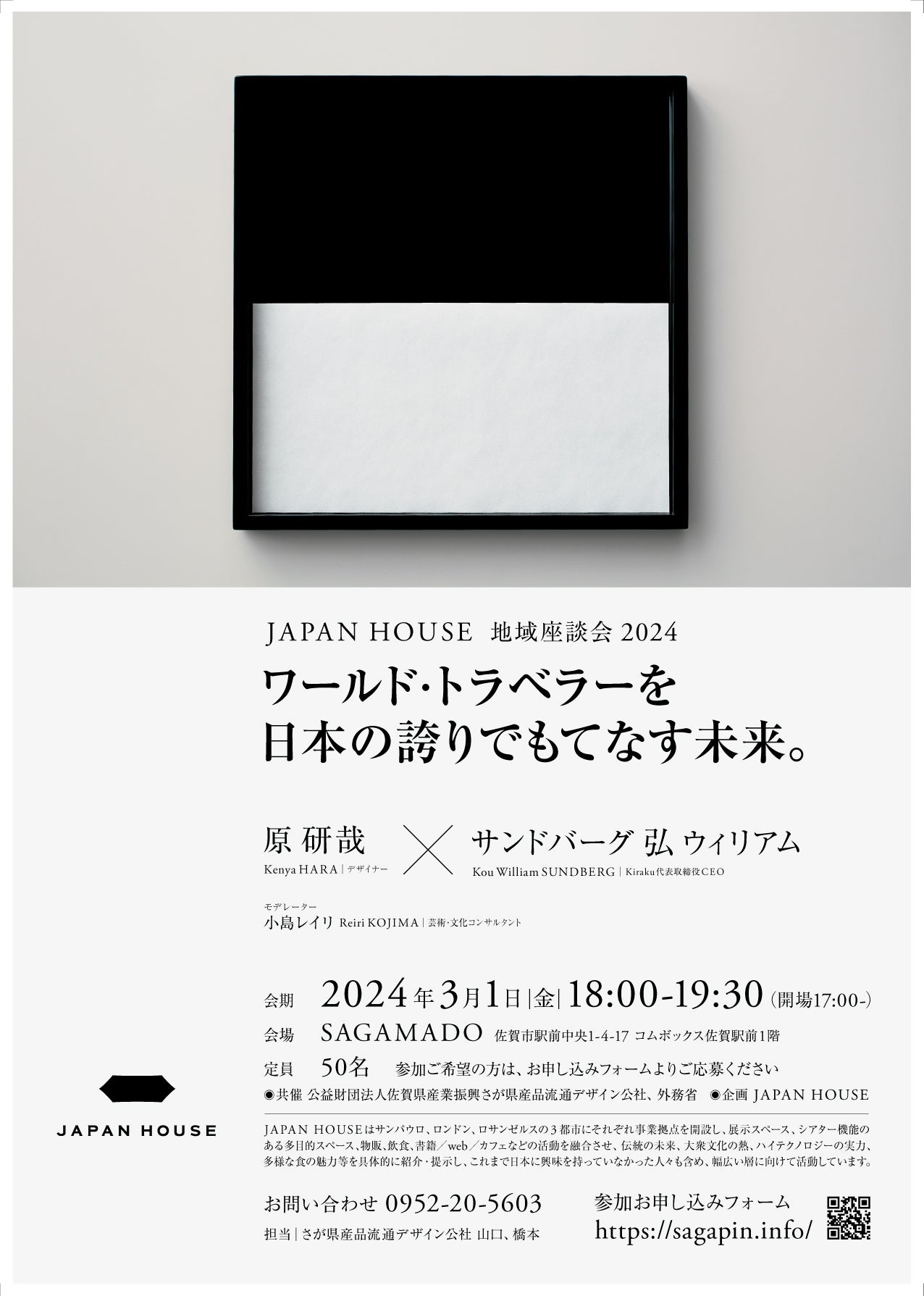 JAPAN HOUSE × SAGA MADO地域座談会「ワールド・トラベラーを日本の誇りでもてなす未来。原研哉 × サンドバーグ 弘 ウィリアム」を開催!