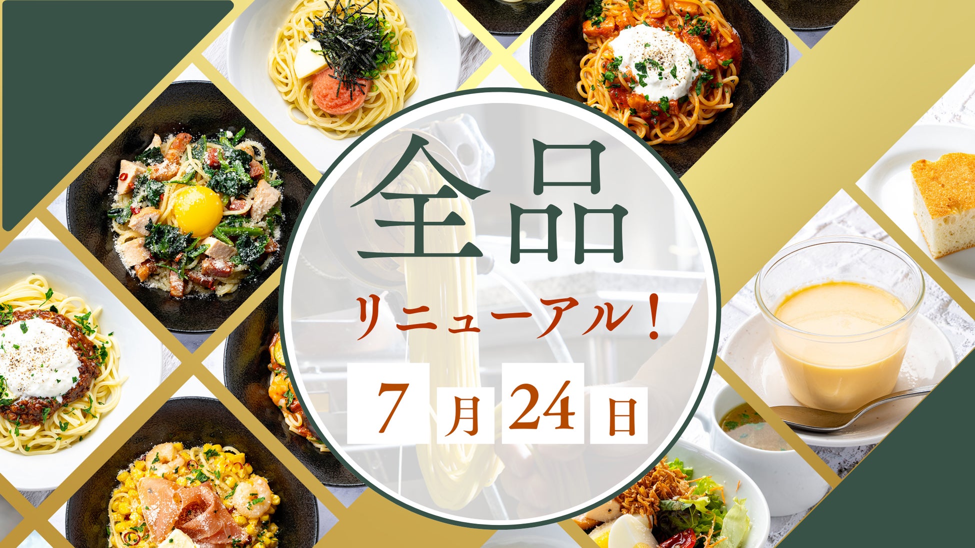 LINE友だち限定で、生パスタメニューをお食事の方限定100円OFFクーポンを、リニューアル日前日の7月23日に配信いたします。