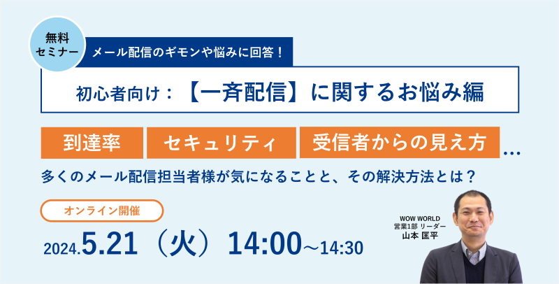 無料オンラインセミナー「メール配信のギモンや悩みに回答!【一斉配信】に関するお悩み編」5月21日(火)開催のお知らせ