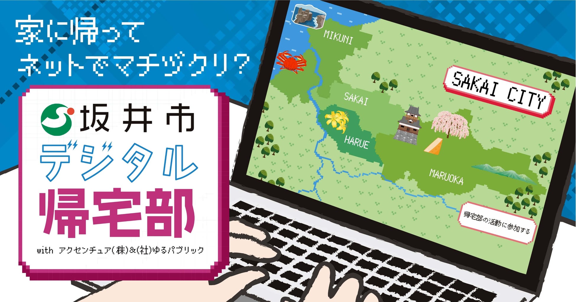 昨年度から始動した「坂井市デジタル帰宅部」は、「東尋坊」や「丸岡城」、「三国湊」など本市にある観光名所の一帯が再 現されたデジタル空間上(マインクラフト)で、これら地域のさらなる活性化施策についてアイデアを出し合う事業です。 提案されたアイデアは市政への反映を目指してブラッシュアップを重ねていきます。坂井市が主催する本事業は、総合コ ンサルティング企業のアクセンチュア株式会社が社会貢献活動の一環として、昨年度よりカリキュラムの開発や事業計画 策定などで支援しています。加えて、高校生らが考案した施策については、海外出身のアクセンチュア社員との意見交換 が行われ、インバウンド需要の取り込み等も視野に入れた実効性のある施策を生み出せるようアドバイスを行いました。 昨年度は 25 名の生徒たちが修了いたしました。