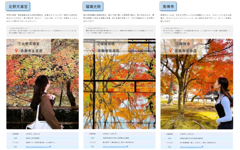 「京都×インスタ映え 秋に行くべき!京都の女子旅にぴったりな紅葉インスタ映えスポット6選」概要