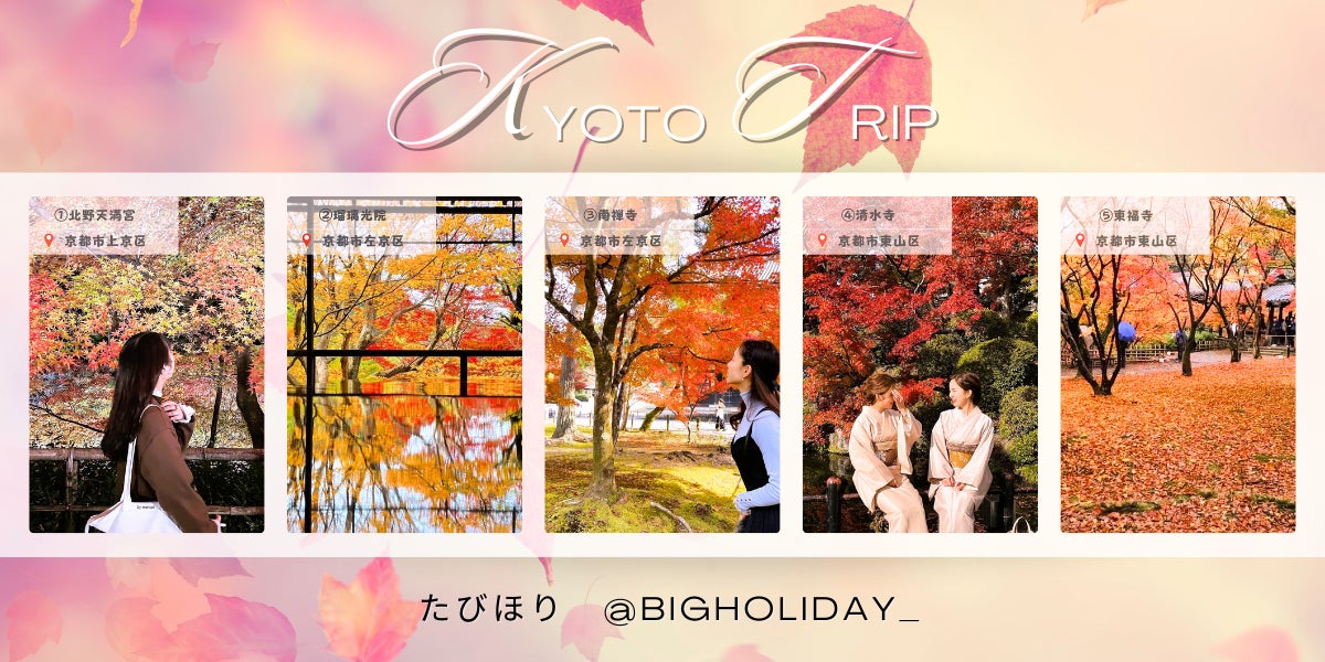 ビッグホリデー株式会社(本社:東京都文京区、代表取締役社長:岩崎 安利)は、Instagram公式アカウント「たびほり」おすすめの女子旅観光スポット【京都編】を紹介した旅コラム「京都×インスタ映え 秋に行くべき!京都の女子旅にぴったりな紅葉インスタ映えスポット6選」を2024年9月26日にビッグホリデー公式サイトにて公開し、同時にビッグホリデー「たびほり」のスタッフが厳選した京都お土産プレゼントキャンペーンを実施いたします。