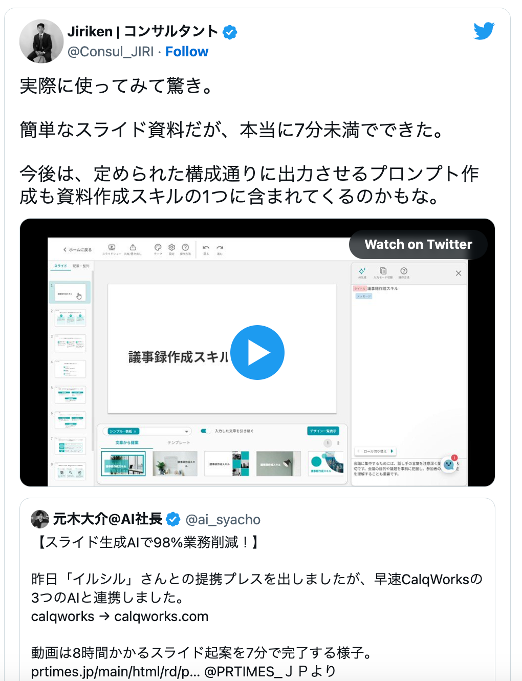 ジェネレーティブAIでスライド作成構想時間98%削減: CalqWorksを使って効率化を実現