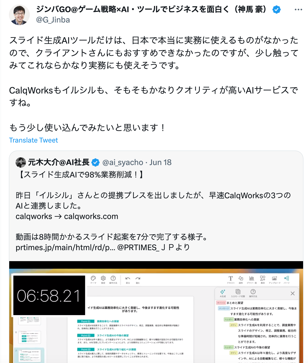 スライド生成AIで98%業務削減!CalqWorks x イルシル連携で圧倒的な業務効率化を